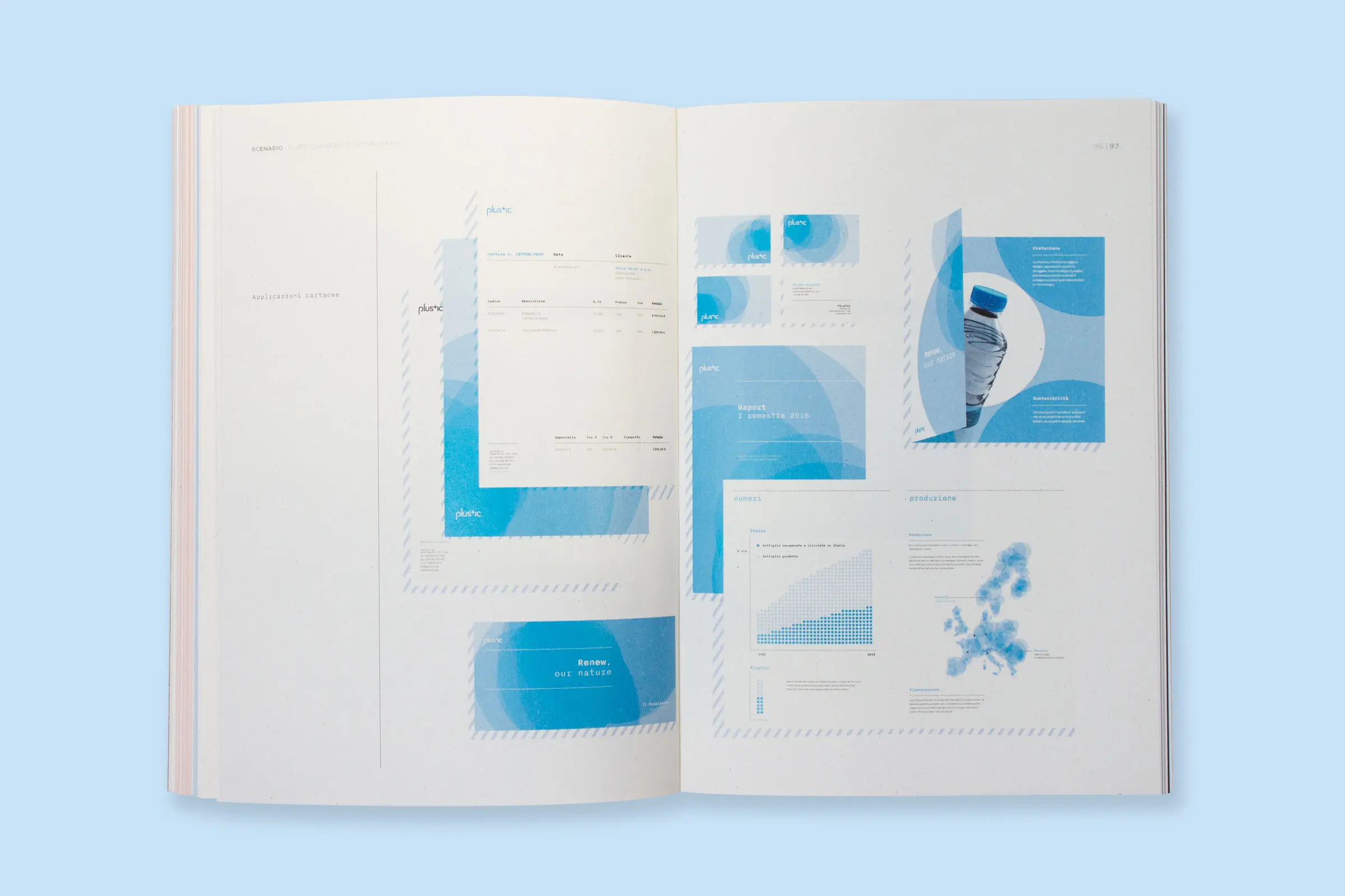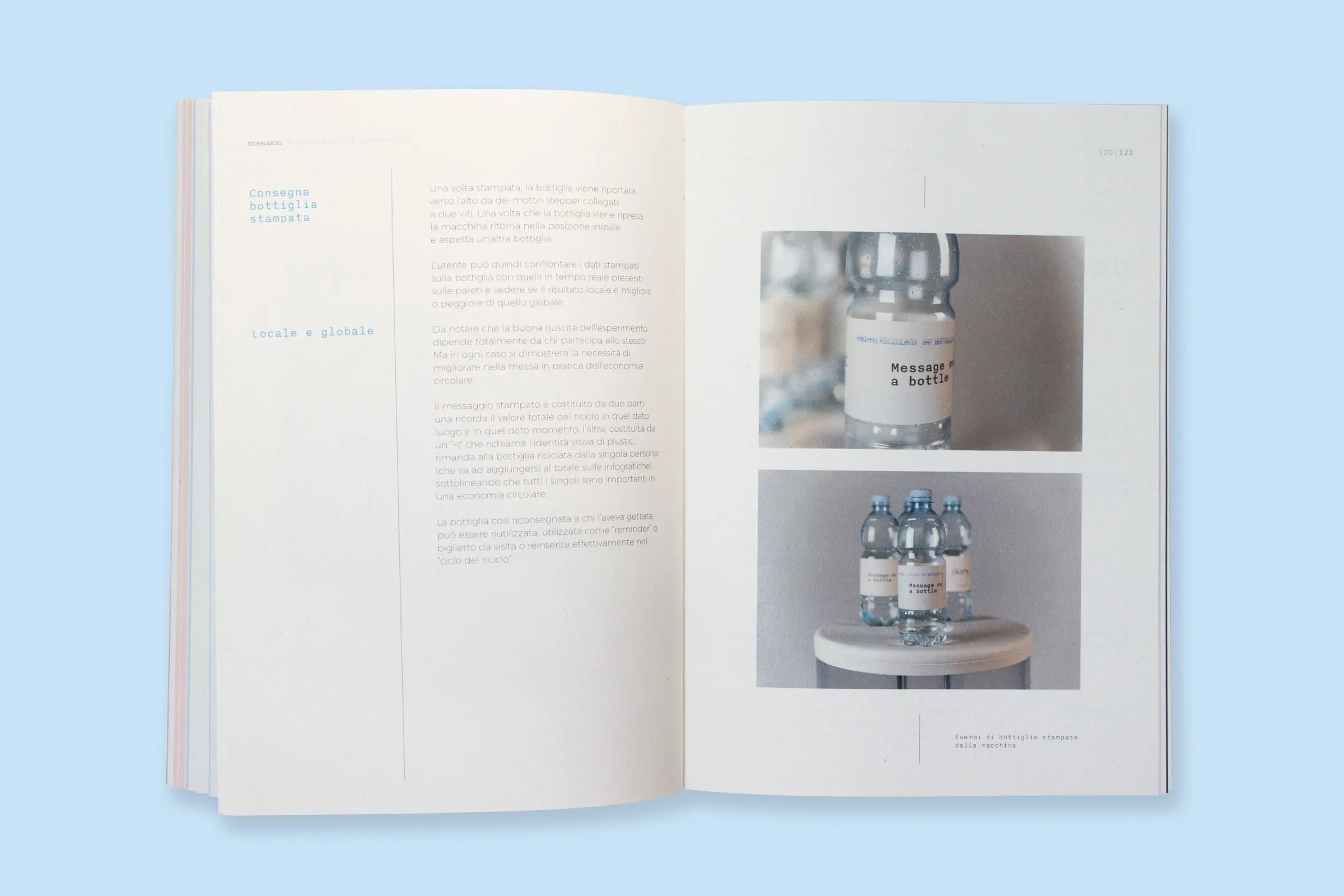 The research is presented in a book measuring 17 x 24 cm closed. It is printed on recycled paper and cardboard and bound in paperback.