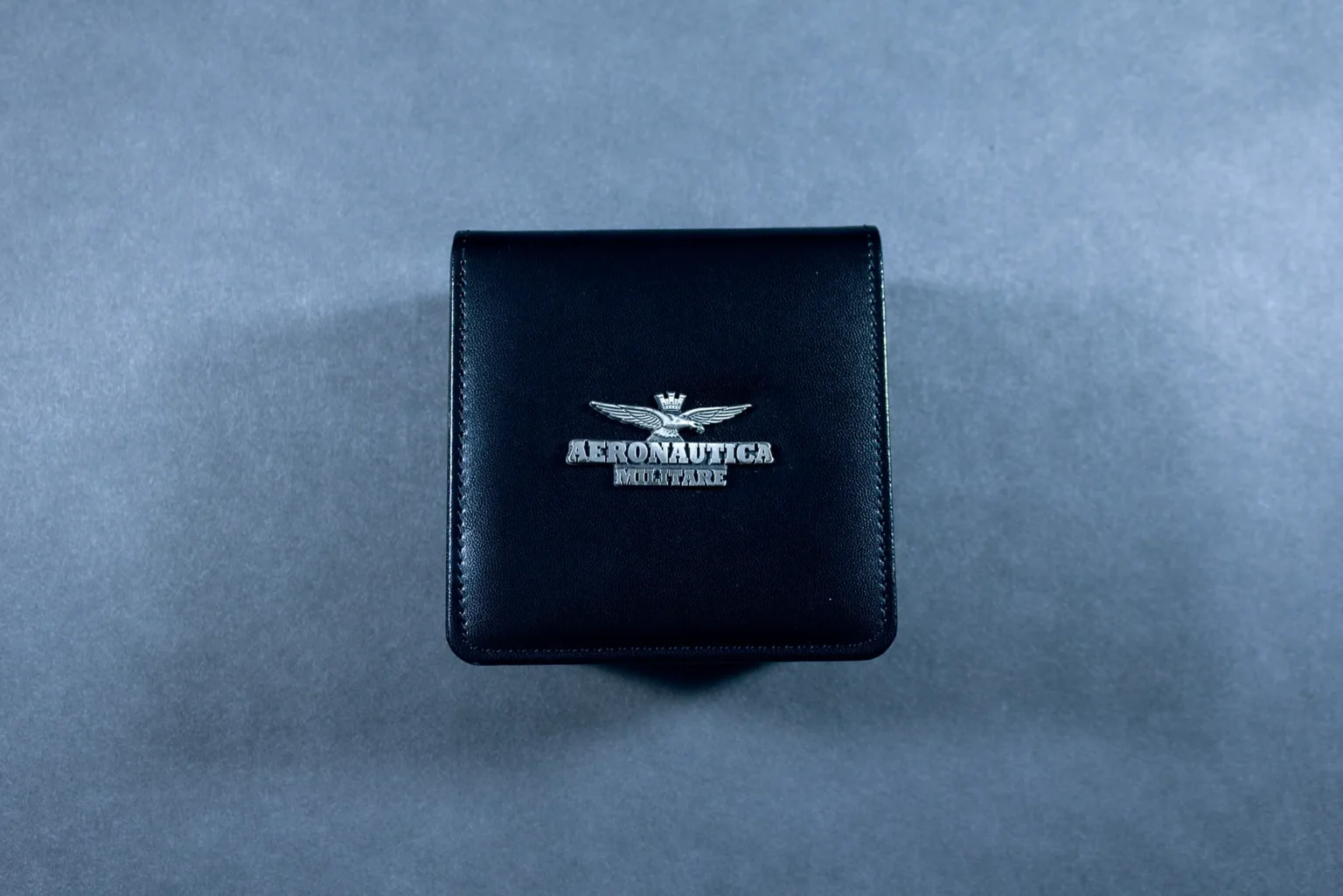 I designed the packaging for the official watch product line of the Italian Air Force (Aeronautica Militare). It consists of a black regenerated leather box containing a silver metal plaque depicting the logo in 3D, with silver-coloured printed details. The box is housed in an outer box containing the instruction booklet and warranty certificate.